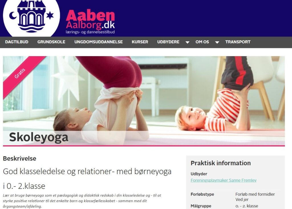 Anne Krogstrup Buch fra Annes Skoleyoga og jeg har også indgået et nyt samarbejde med Åben Aalborg, hvor vi tilbyder kursus til lærere og pædagoger + 8 ugers forløb til din klasse i børneyoga!